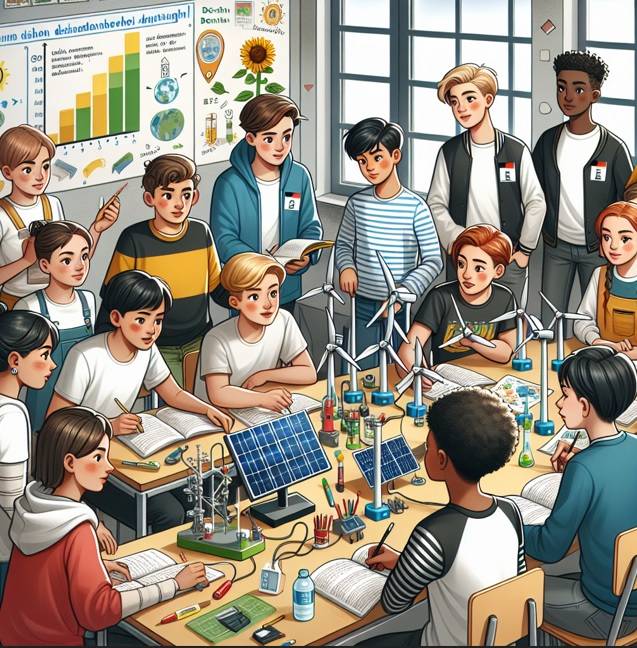 In einem EE-Lab experimentieren Jugendliche der höheren Klassen der Mittelschule Baiersdorf mit Kindern der Klassenstufe 3-4 der Grundschule Bubenreuth in altersgemischten Kleingruppen. Sie erleben und erlernen dabei gemeinsam die Funktionsweise von verschiedenen erneuerbaren Energien. Der Lernprozess wird dokumentiert und Lernprodukte werden noch am gleichen Tag für die Öffentlichkeit zur Besichtigung zugänglich gemacht. Das Wissen über Erneuerbare Energien wird im Kontext des Klimawandels immer wichtiger und dementsprechend findet es sich sowohl im Lehrplan der Mittelschule im Fach Natur und Technik als auch im Heimat- und Sachunterricht-Lehrplan der Grundschule. Der AK EWB unterstützt